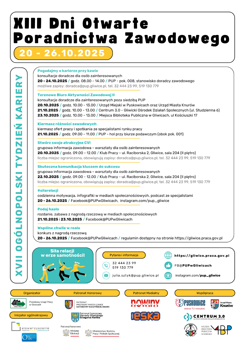 Przed nami XIII Dni Otwarte Poradnictwa Zawodowego, których tematem przewodnim będzie hasło: „Siła relacji w erze samotności”.