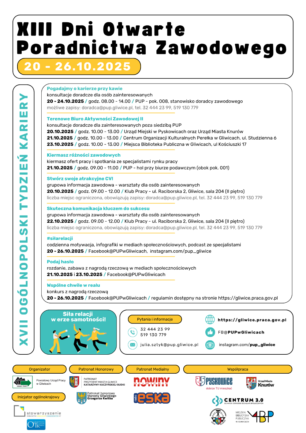 Przed nami XIII Dni Otwarte Poradnictwa Zawodowego, których tematem przewodnim będzie hasło: „Siła relacji w erze samotności”.